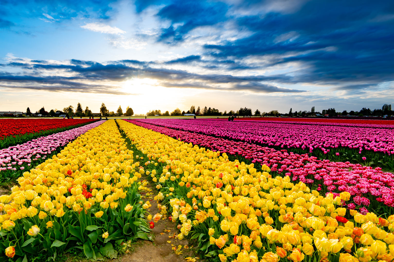 Experience the magic of the Skagit Valley tulip fields in this half-day landscape workshop. Each spring, the valley explodes with color as endless rows of tulips blanket the countryside in brilliant reds, yellows, purples, and pinks. We’ll time our photography for golden hour, when the soft, glowing light transforms the fields into a dreamlike scene and creates the perfect conditions for capturing their beauty.